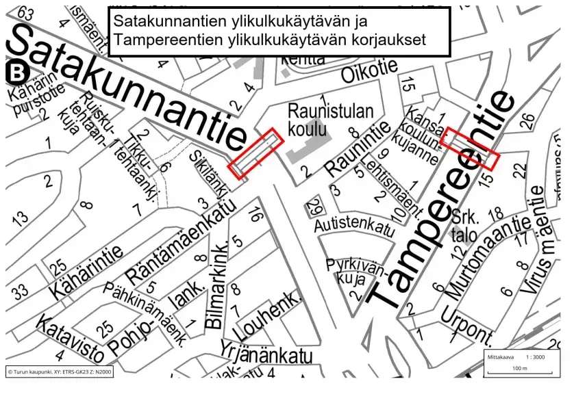 Satakunnantien ylikulkusiltaa Raunistulan koulun kohdalla korjataan maanantaista 3. marraskuuta 2025 alkaen. Silta poistetaan käytöstä korjaustöiden ajaksi.